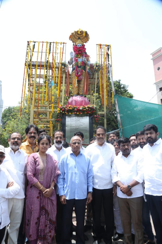 Today, on the occasion of the 101st birth anniversary of Viswa Vikhyata, Padma Shri Nandamuri Taraka Rama Rao, the family members and Telugu film celebrities celebrated the birth anniversary at NTR’s statue in Filmnagar. All the prominent people garlanded his statue and celebrated his birthday. Mr. Nandamuri Mohan Krishna, Nandamuri Mohan Roopa, MLA Mr. Maganti Gopinath, President of Telugu Film Producer Council Mr. K.L. Damodar Prasad, Secretary Mr. Prasanna Kumar, Filmnagar Cultural Committee Secretary Mr. Mohan Mullapudi, Jubilee Hills Corporator Mr. Veldanda Venkatesh, Yusuf Guda Corporator Mr. Bandari Rajkumar Patel, BJP Secretary Mr. Chandra Madhu and some dignitaries were present.