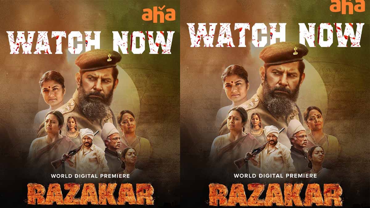 Razakar starring Bobby Simha, Vedhika, Anishka Tripathi, Prema, and Indraja in lead roles. Produced by Gudur Narayana Reddy under the banner of Samarveer Creations LLP and directed by Yata Satyanarayana, the film depicts the atrocities committed by the Razakars in the 1940s. Released in theaters on March 15 last year, the movie received significant success and critical acclaim. Critics praised the filmmaking and the impactful scenes, with positive reviews from various quarters.