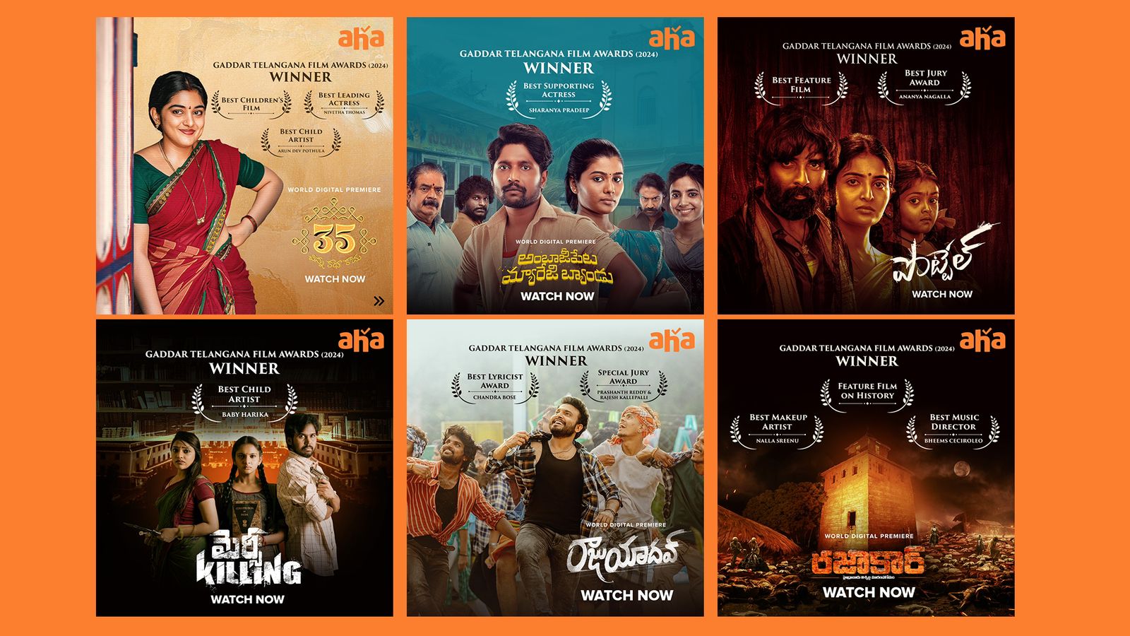 35 ఇది చిన్న కథ కాదులో నటించిన మాస్టర్ అరుణ్ దేవ్ పోతుల, మెర్సీ కిల్లింగ్ లో నటించిన బేబి హారిక ఉత్తమ చైల్డ్ ఆర్టిస్టులుగా గద్దర్ అవార్డ్స్ కు ఎంపికయ్యారు. రాజు యాదవ్ సినిమాకు బెస్ట్ లిరిసిస్ట్ గా చంద్రబోస్, రజాకార్ మూవీకి బెస్ట్ మేకప్ ఆర్టిస్ట్ గా నల్ల శ్రీను గద్దర్ అవార్డ్స్ దక్కించుకున్నారు. పొట్టేల్ మూవీలో నటనకు అనన్య నాగళ్ల, రాజు యాదవ్ మూవీకి నిర్మాతలుగా ప్రశాంత్ రెడ్డి, రాజేశ్ కల్లేపల్లి స్పెషల్ జ్యూరీ అవార్డ్స్ గెల్చుకున్నారు. తమ ఓటీటీ ప్లాట్ ఫామ్ లో స్ట్రీమింగ్ అవుతున్న చిత్రాలకు ప్రధాన విభాగాల్లో గద్దర్ అవార్డ్స్ దక్కడంపై ఆహా టీమ్ సంతోషాన్ని వ్యక్తం చేసింది.ఆహా ప్రేక్షకుల అభిరుచికి తగ్గ చిత్రాలు, సిరీస్లు, షోలను అందించడంతో పాటు, ముఖ్యంగా రెండు రాష్ట్రాల్లోని సాంస్కృతిక వైభవాన్ని చాటే కంటెంట్ ని అందించాలనే లక్ష్యంతో ఉన్నట్లు ఆహా టీమ్ తెలిపింది.