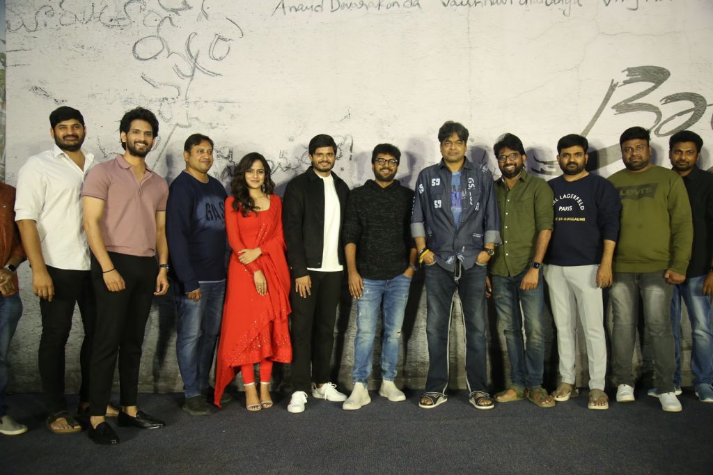 ఆనంద్ దేవరకొండ, విరాజ్ అశ్విన్, వైష్ణవి చైతన్య నటిస్తున్న కొత్త సినిమా బేబీ. ఈ చిత్రాన్ని మాస్ మూవీ మేకర్స్ పతాకంపై ఎస్కేఎన్, దర్శకుడు మారుతి సంయుక్తంగా నిర్మిస్తున్నారు. సాయి రాజేష్ దర్శకత్వం వహిస్తున్నారు. చిత్రీకరణ పూర్తి చేసుకున్న ఈ సినిమా త్వరలో విడుదలకు సిద్ధమవుతోంది. తాజాగా బేబీ చిత్ర టీజర్ను హైదరాబాద్లో విడుదల చేశారు. ఈ కార్యక్రమంలో ప్రముఖ దర్శకులు అనిల్ రావిపూడి, హరీష్ శంకర్, వశిష్ట, వెంకటేష్ మహా, వీఐ ఆనంద్ పాల్గొన్నారు. ఈ సందర్భంగా