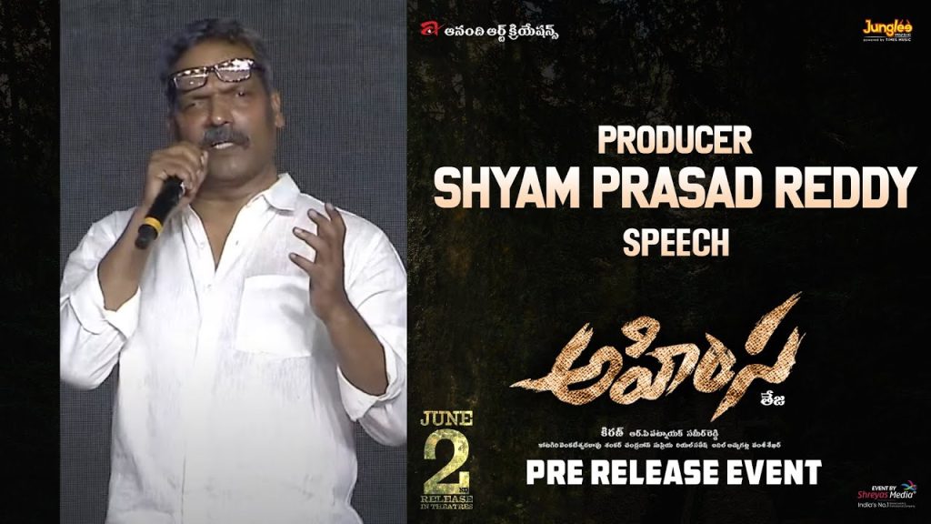 శ్యామ్ ప్రసాద్ రెడ్డి మాట్లాడుతూ.. రామానాయుడు గారు మా కుటుంబానికి ఆప్తులు. నాకు గురు సమానులు. సినిమా అంటే ఆయనకి ప్రాణం, ఊపిరి. దేశంలోని అన్ని భాషల్లో సినిమాలు తీసిన మూవీ మొఘల్. సురేష్ బాబు, వెంకటేష్ బాబు లని కూడా సినిమాల్లో ప్రోత్సహించారు. తర్వాత మూడో జనరేషన్ కోసం ఎదురు చూశారు. రానా ని పరిచయం చేశారు. అభిని కూడా నటుడ్ని చేయాలనే కోరిక ఆయనకి ఉండేది. ఆ కల ఈ రోజు నిజం కావడం ఆనందంగా వుంది. తేజ చాలా విలక్షణమైన దర్శకుడు. ప్రతిభను గుర్తించి బయటికి తీసుకు వచ్చే దర్శకుడు. రామానాయుడు గారు అభిని ఆశీర్వదిస్తున్నారు. టీం అందరికీ ఆల్ ది బెస్ట్. ఈ సినిమా పెద్ద హిట్ అవుతుంది’’ అన్నారు.