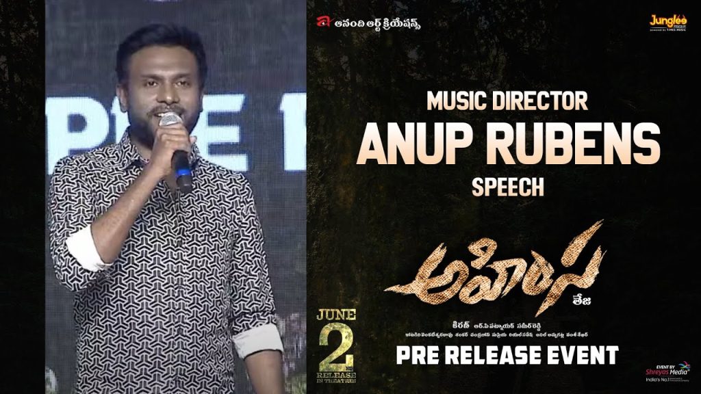 అనూప్ రూబెన్స్ మాట్లాడుతూ.. నువ్వు నేను సినిమాకి కీబోర్డ్ ప్లేయర్ గా చేశాను. ఇప్పుడు అహింసకి బ్యాక్ గ్రౌండ్ స్కోర్ చేశాను. తేజ గారికి కృతజ్ఞతలు. తేజ గారి స్టైల్ సినిమా ఇది. అభి ఈ చిత్రంతో పెద్ద స్టార్ అవుతారు.