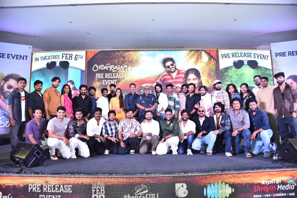 శ్రీమతి. చింతా వరలక్ష్మీ సమర్పణలో శ్రీ చక్రాస్ ఎంటర్టైన్మెంట్ బ్యానర్ మీద చింతా వినీష రెడ్డి, చింతా గోపాల కృష్ణా రెడ్డి నిర్మాతలుగా చింతా రాజశేఖర్ రెడ్డి సహ నిర్మాతగా రూపొందిన ‘శ్రీ చిదంబరం’. వంశీ తుమ్మల, సంధ్యా వశిష్ట జంటగా నటించిన ఈ చిత్రం ద్వారా వినయ్ రత్నం దర్శకుడిగా పరిచయమవుతున్నారు. ఫిబ్రవరి 6న ఈ చిత్రం ప్రేక్షకుల ముందుకు రానుంది. ఈ చిత్రం ప్రీరిలీజ్ వేడుక ఎంతో ఘనంగా జరిగింది. ఈ వేడుకకు లెజెండరీ సంగీత దర్శకుడు ఎం.ఎం.కీరవాణి, కథానాయకుడు ఆనంద్ దేవరకొండ, నిర్మాత, నటి నిహారిక కొణిదెల హాజరయ్యారు.