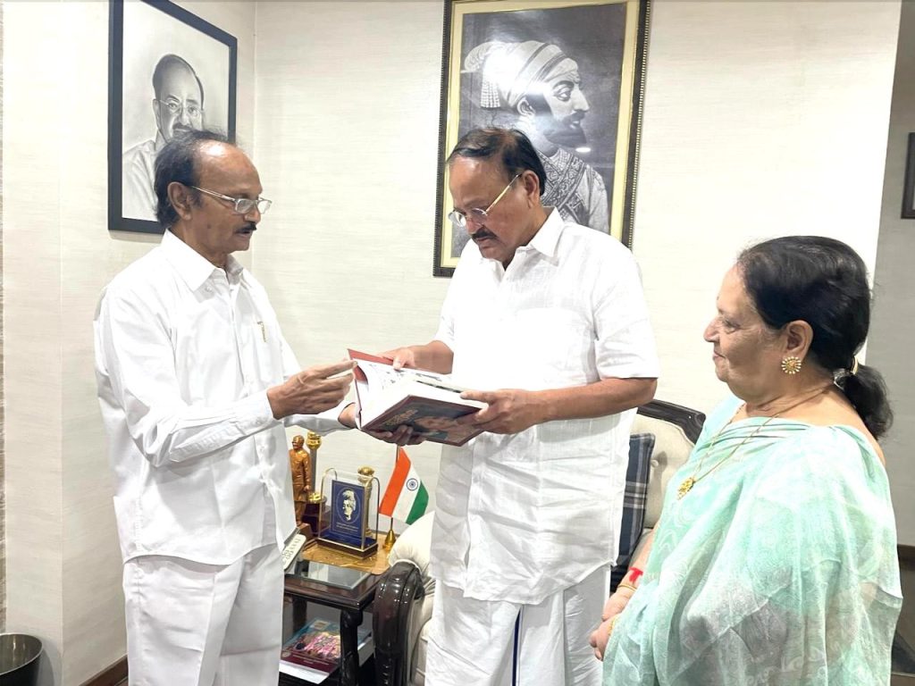 “మీర్జాపురంరాణి -కృష్ణవేణి ” పుస్తకాన్ని రచించిన సీనియర్ జర్నలిస్ట్ భగీరథ ను, నిర్మాత ఎన్ .ఆర్ .అనురాధాదేవి ని వెంకయ్య నాయుడు అభినందించారు.