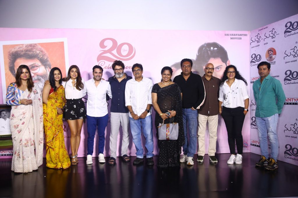 ప్రకాశ్ రాజ్ మాట్లాడుతూ ”నువ్వు లేకపోతే ‘నువ్వే నువ్వే’ లేదని రవికిశోర్ గారు అన్నారు. మేమంతా లేకపోతే ‘నువ్వే నువ్వే’ లేదు. టీమ్ అంతా ఎంతో కష్టపడ్డారు. నేను ఈ రోజు ఫుల్ సినిమా చేశా. ‘నువ్వు నాకు నచ్చావ్’ కోసం నన్ను బ్యాన్ చేస్తే… నాపై బ్యాన్ తీసే వరకూ వెయిట్ చేశారు. సినిమా అంటే ఎంతో ప్రేమించే రవికిశోర్, త్రివిక్రమ్ తో జర్నీ ఎంజాయ్ చేశా. త్రివిక్రమ్ దర్శకుడు కాక ముందే రచయితగా నాకు తెలుసు. నా కోసమే మాటలు రాసేవాడిని అనిపించేది” అని అన్నారు. శ్రియ మాట్లాడుతూ ”త్రివిక్రమ్ గారు, రవికిశోర్ గారు ఢిల్లీ వచ్చారు. ఈ కథ వినగానే నచ్చేసింది. ‘మీరు నిజంగా ఈ కథలో నేను నటించాలని అనుకుంటున్నారా?’ అని అడిగా. షూటింగ్ చాలా ఎంజాయ్ చేశా. తరుణ్ స్వీట్ కో స్టార్. ప్రకాశ్ రాజ్ నా తండ్రిలా ఉండరు. కానీ, సినిమాలో తండ్రిలా చేశారు. మా మధ్య మ్యూజిక్ గురించి డిస్కషన్స్ జరిగాయి. ఈ సినిమా ఒక బ్యూటిఫుల్ మెమరీ” అని అన్నారు. నృత్య దర్శకులు సుచిత్రా చంద్రబోస్ & శంకర్, సినిమాటోగ్రాఫర్ హరి అనుమోలు, నటీమణులు మధుమిత, అనితా చౌదరి, శిల్పా చక్రవర్తి, ఆదిత్య మ్యూజిక్ నిరంజన్, మాధవ్ తదితరులు పాల్గొన్నారు.