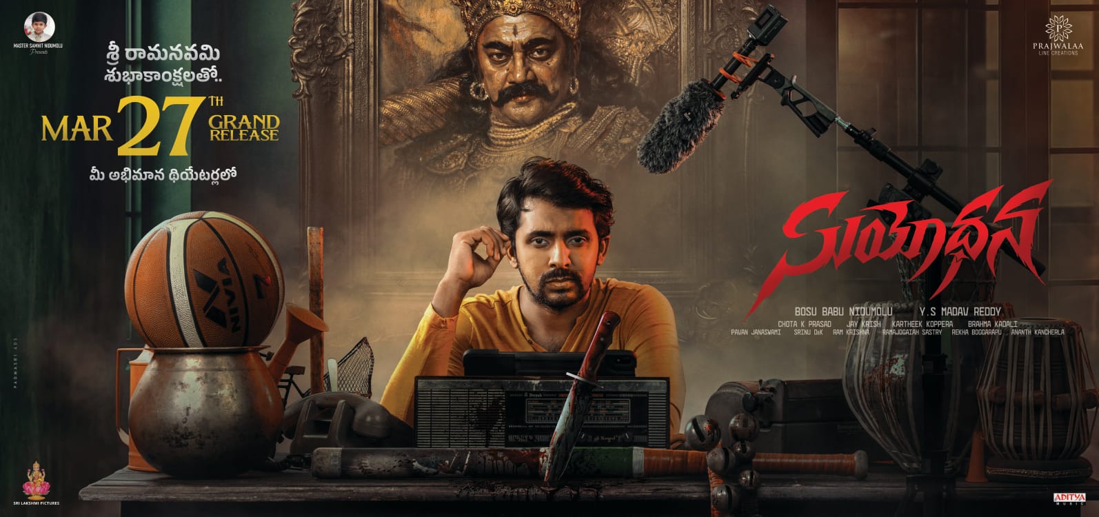 ప్రజ్వలా లైన్ క్రియేషన్స్ బ్యానర్ పై ప్రియదర్శి, ద్రిషిక చందర్ హీరో హీరోయిన్ గా డైలాగ్ కింగ్ సాయికుమార్, సీనియర్ హీరోయిన్ ప్రేమ కీలకపాత్రల్లో నటించిన చిత్రం సుయోధన. వై ఎస్ మాధవ్ రెడ్డి దర్శకత్వం లో తెరకెక్కుతున్న ఈ చిత్రాన్ని బోసుబాబు నిడుమోలు నిర్మిస్తున్నారు. అన్ని కార్యక్రమాలను పూర్తి చేసుకున్న ఈ సినిమా మార్చి 27 న ప్రపంచవ్యాప్తంగా విడుదల అవుతోంది. ఈ సందర్భంగా మేకర్స్ రిలీజ్ డేట్ పోస్టర్ ను విడుదల చేశారు.