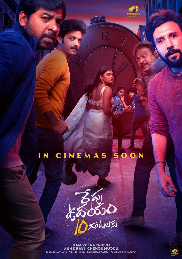 ‘రేపు ఉదయం పది గంటలకు’ సినిమాలో అభినవ్ గోమటం, హెబా పటేల్, చైతన్య రావు, కిరీటి దామరాజు, వాసు ఇంటూరి, సాహితి అవంచ, మోహిత్ ప్రధాన తారాగణం. ఫస్ట్ లుక్ పోస్టర్ చూస్తే… గడియారాన్ని హైలైట్ చేశారు. టైటిల్ వెనుక ఒక క్లాక్, నటీనటులు అందరి వెనుక మరొక క్లాక్ ఉన్నాయి. టైటిల్ వెనుక గడియారంలో పది గంటలు చూపిస్తే… ఆర్టిస్టుల వెనుక గడియారంలో రెండు గంటల సమయాన్ని చూపించారు. వీటి వెనుక కథ తెలియాలంటే టీజర్, ట్రైలర్ విడుదల వరకు వెయిట్ చేయాలి.