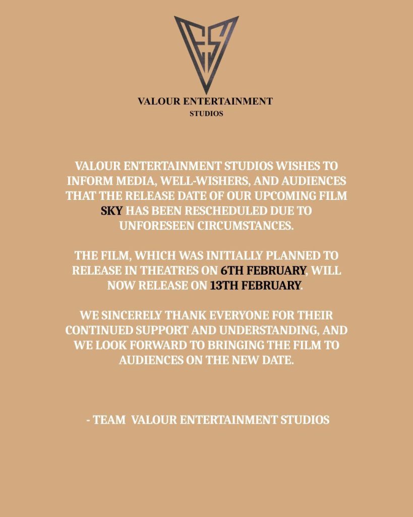 “స్కై” సినిమా ఫిబ్రవరి 6న గ్రాండ్ థియేట్రికల్ రిలీజ్ కు రావాల్సిఉండగా వాయిదా పడింది. అనివార్య కారణాలతో వాయిదా పడిన ఈ సినిమాను ఈ నెల 13న రిలీజ్ చేస్తున్నట్లు మేకర్స్ ప్రకటించారు. ప్రమోషనల్ కంటెంట్ తో పాటు లిరికల్ సాంగ్స్ తో మంచి ఫీల్ గుడ్ ఎంటర్ టైనర్ గా “స్కై” మూవీ ప్రేక్షకుల దృష్టిని ఆకర్షిస్తోంది.