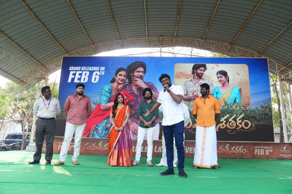 నిర్మాత సుధాకర్ గారు మాట్లాడుతూ… “శ్రీరామ ఇంజనీరింగ్ కాలేజీలో మా ‘సుమతి శతకం’ ట్రైలర్ లాంచ్ జరగడం, ఇక్కడ విద్యార్థుల నుండి వచ్చిన స్పందన చూడటం చాలా ఆనందంగా ఉంది. మేము మా ప్రమోషన్ కార్యక్రమాలను రాయలసీమ నుంచే ప్రారంభించాము. కర్నూలు, అనంతపురం, కడప ప్రాంతాల్లో ప్రేక్షకుల ఆదరణ అద్భుతంగా ఉంది. ముఖ్యంగా నిన్న నా సొంత ఊరు మదనపల్లిలో, మరియు ఇప్పుడు ఇక్కడ తిరుపతిలో మాకు దక్కిన రెస్పాన్స్ మరువలేనిది. ఈ చిత్రాన్ని ప్రముఖ నిర్మాణ సంస్థ ‘మైత్రి మూవీ మేకర్స్’ ద్వారా ఫిబ్రవరి 6న రెండు తెలుగు రాష్ట్రాల్లో గ్రాండ్ గా విడుదల చేస్తున్నాము. ఈ చిత్రం పక్కా కామెడీతో కూడిన ఫ్యామిలీ ఎంటర్టైనర్ గా మిమ్మల్ని అలరిస్తుంది. ఈ వేడుక నిర్వహించడానికి అవకాశం ఇచ్చిన కాలేజీ ప్రిన్సిపల్ జయచంద్ర గారికి, విద్యార్థులకు మా ప్రత్యేక కృతజ్ఞతలు. అందరూ తప్పకుండా థియేటర్లో సినిమా చూసి ఎంజాయ్ చేయండి” అన్నారు.
