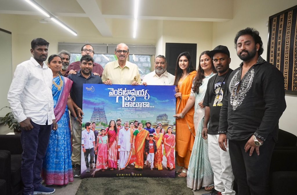 సీనియర్ నటుడు మురళీధర్ గౌడ్, సీనియర్ నటి సుధ ప్రధాన పాత్రల్లో నటించిన చిత్రం ‘వెంకట్రామయ్య గారి తాలూకా’. ‘జయమ్మ పంచాయతీ’ మూవీ ఫేమ్ దినేష్ కుమార్ హీరోగా, ఈటీవీ ప్రభాకర్ కుమార్తె దివిజ ప్రభాకర్ హీరోయిన్గా నటించారు. తండ్రి, పిల్లల మధ్య భావోద్వేగాల నేపథ్యంలో వారి వారి బాధ్యతలను తెలియజేసేలా రూపొందిన ఈ సినిమాను డైరెక్టర్ సతీష్ ఆవాల తెరకెక్కిస్తున్నారు. కోమలి క్రియేషన్స్ బ్యానర్పై కోమలి మహేందర్ తొట్టె, సోమేష్ సారిపల్లి ఎంతో ప్రతిష్టాత్మకంగా నిర్మించిన ఈ చిత్రం పల్లెటూరి నేపథ్యంలో సాగే క్యూట్ లవ్స్టోరీతో పాటు ఫాదర్ సెంటిమెంట్ ప్రధానంగా ఉండనుంది. ఈ చిత్రంలో సీనియర్ దర్శకుడు, రచయిత, నటుడు యనమదల కాశీవిశ్వనాథ్, మిర్చిమాధవి, జబర్దస్త్ ఫేం సత్యశ్రీ, మొగలిరేకులు సీరియల్ ఫేం ఇక్బాల్, జీవనప్రియ, గౌరీనాయుడు, హరీష్ టెక్కలి, హాసిని యామిని కీలక పాత్రల్లో నటించారు. ఈ మూవీ టైటిల్ అండ్ ఫస్ట్ లుక్ పోస్టర్ను తాజాగా తెలుగు ఫిల్మ్ ఛాంబర్ అధ్యక్షుడు, ప్రముఖ నిర్మాత దగ్గుబాటి సురేష్ బాబు ఆవిష్కరించారు. ఈ కార్యక్రమంలో మూవీ టీమ్ పాల్గొన్నారు. టైటిల్ చాలా బాగుందని, సినిమా కూడా బాగుంటుందని సురేష్ బాబు అన్నారు.