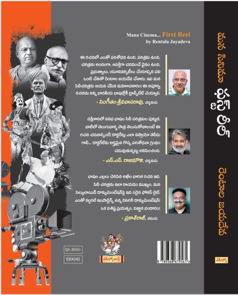 దక్షిణ భారతీయ భాషా చిత్రాల తొలి అడుగుల చరిత్రపై జయదేవ పాతికేళ్ళ పరిశోధనా పరిశ్రమకు ప్రతిఫలం ఈ ‘మన సినిమా... ఫస్ట్ రీల్’ పుస్తకం. ఇప్పటికీ మన సినీ చరిత్రలో నమోదు కాకుండా మిగిలిపోయిన అనేక అంశాలను తవ్వి తీసిన అరుదైన రచన ఇది. మూకీ సినిమాల రోజుల నుంచి తెర మీద బొమ్మ మాటలు నేర్చి, భాషల వారీగా ప్రత్యేక శాఖలుగా విడివడిన టాకీల తొలి రోజుల దాకా మన భారతీయ సినిమాలో, ముఖ్యంగా మన తెలుగు సినిమాలో జరిగిన మనకు తెలియని అనేక పరిణామాలను సాక్ష్యాలతో, సవిశ్లేషణాత్మకంగా రాసిన ఉద్ర్గంథం ఇది. రచయిత జయదేవ శ్రమించి సేకరించిన దాదాపు వందేళ్ళ క్రితపు అలనాటి పత్రికా సమాచారం, ఫోటోల లాంటి ప్రామాణిక ఆధారాలతో... అరుదైన సమాచారంతో... ఈ సినీ చరిత్ర రచన సాగింది.