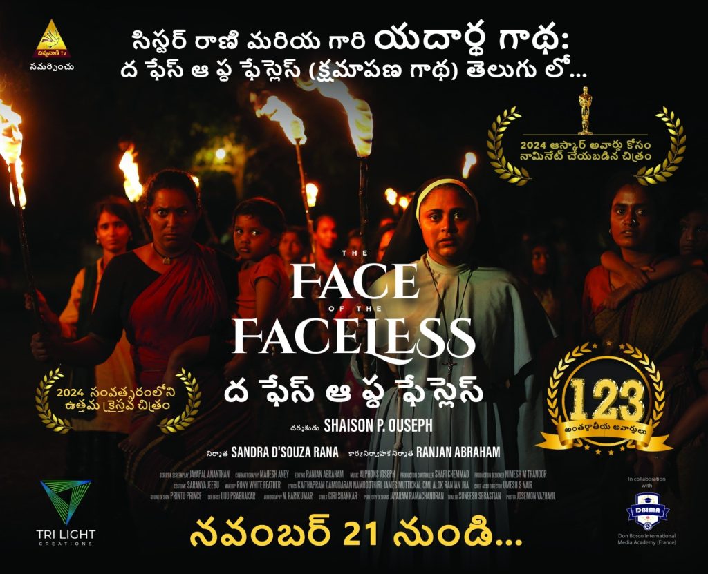 వరల్డ్ వైడ్ గా సిల్వర్ స్క్రీన్ పై సెన్సెషనల్ క్రియేట్ చేసి, 2024 ఆస్కార్ అవార్డులకు నామినేట్ అయిన ‘ది ఫేస్ ఆఫ్ ది ఫేస్లెస్’ (The Face of the Faceless) మూవీ తెలుగు ప్రేక్షకుల ముందుకు రాబోతుంది. ట్రై లైట్ క్రియేషన్స్ నిర్మించిన ఈ మూవీని దివ్యవాణి సోషల్ కమ్యూనికేషన్స్ మద్దతుతో ఈ మూవీ నవంబర్ 21న తెలుగు వెర్షన్ ఆంధ్రప్రదేశ్, తెలంగాణ రాష్ట్రాల్లోని థియేటర్లలో విడుదల కానుంది. ఈ సందర్భంగా చిత్ర యూనిట్ తెలుగు ఫిలింఛాంబర్ లో మీడియా సమావేశం ఏర్పాటు చేశారు.