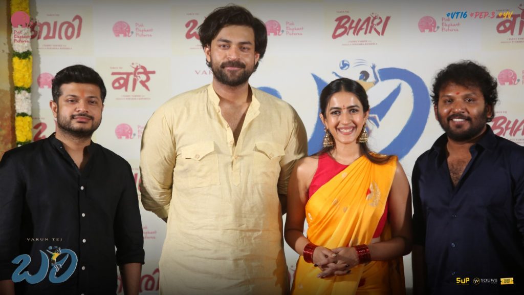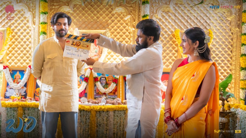 మెగా ప్రిన్స్ వరుణ్ తేజ్ హీరోగా పింక్ ఎలిఫెంట్ పిక్చర్స్ బ్యానర్ మీద నిహారిక కొణిదెల నిర్మాతగా యదు వంశీ తెరకెక్కిస్తున్న నూతన చిత్రం ‘బరి’. ఈ మూవీకి సంబంధించిన పూజా కార్యక్రమాలను శనివారం నాడు నిర్వహించారు. ఈ సినిమా ప్రారంభోత్సవానికి ఆంధ్ర ప్రదేశ్ డిప్యూటీ సీఎం పవన్ కళ్యాణ్ ముఖ్య అతిథిగా విచ్చేశారు.