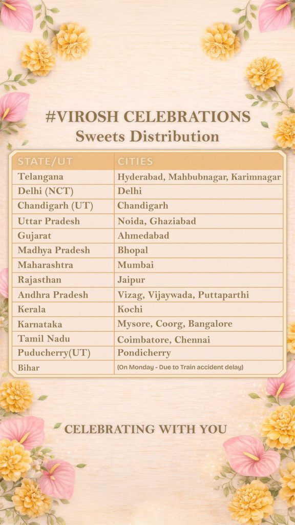 ఈ ప్రకటనలో విరోష్ స్పందిస్తూ – మా జీవిత ప్రయాణంలో ఈ దేశ ప్రజలందరూ ఒక భాగమే. మా వివాహం సందర్భంగా మీరంతా చూపించిన ప్రేమకు, అందించిన ఆశీస్సులకు కృతజ్ఞతలు. ఈ సంతోషమైన సందర్భాన్ని మీతో కలిసి సెలబ్రేట్ చేసుకునేందుకు మీ అందరికీ స్వీట్స్ పంపిస్తున్నాము. వివిధ నగరాల్లోని దేవాలయాల్లో అన్నదాన కార్యక్రమం నిర్వహిస్తున్నాం. మీ ఆశీస్సులు ఎప్పుడూ మాపై ఉండాలి. అని అన్నారు.