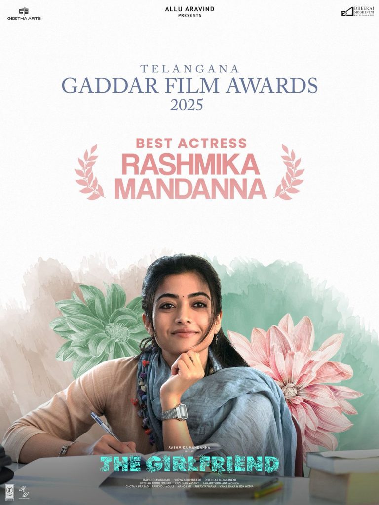 నేషనల్ క్రష్ రశ్మిక మందన్న తన కెరీర్ లో మరో ఘనతను దక్కించుకుంది. ఈ రోజు ప్రకటించిన గద్దర్ అవార్డ్స్ లో “ది గర్ల్ ఫ్రెండ్” చిత్రానికి ఉత్తమ నటిగా అవార్డ్ గెల్చుకుంది. ప్రేమికుడి షరతులన్నీ పక్కనపెట్టి తనదైన స్వేచ్ఛను కోరుకునే యువతిగా రశ్మిక నటన ప్రతి ఒక్కరినీ ఆకట్టుకుంది. ఈ చిత్రంలో దీక్షిత్ శెట్టి హీరోగా నటించారు. బాక్సాఫీస్ వద్ద “ది గర్ల్ ఫ్రెండ్” సినిమా మంచి వసూళ్లను సాధించింది.